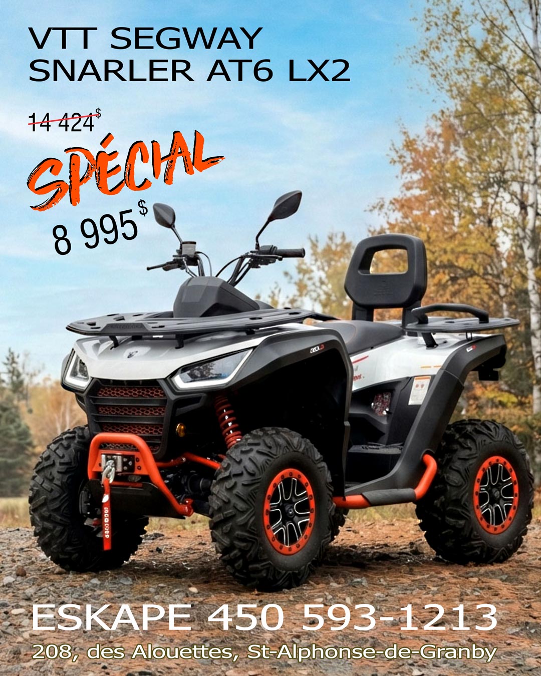 Le Segway Snarler AT6 LX2 2023 est un VTT utilitaire conçu pour ceux qui veulent combiner travail, performance et confort à deux passagers. Robuste, bien équipé d’origine et offert actuellement à prix réduit, ce modèle représente une alternative sérieuse aux grandes marques du marché.